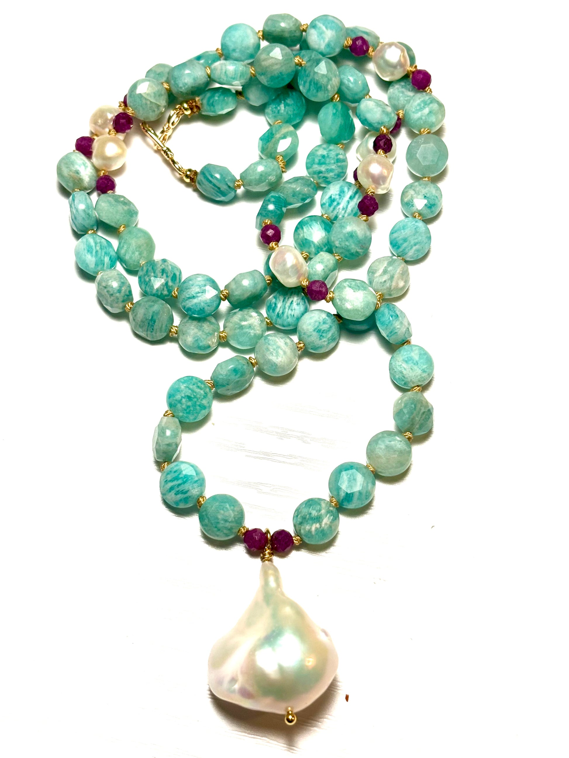 One-of-a-kind. Chrysoprase, garnets, freshwater pearls.